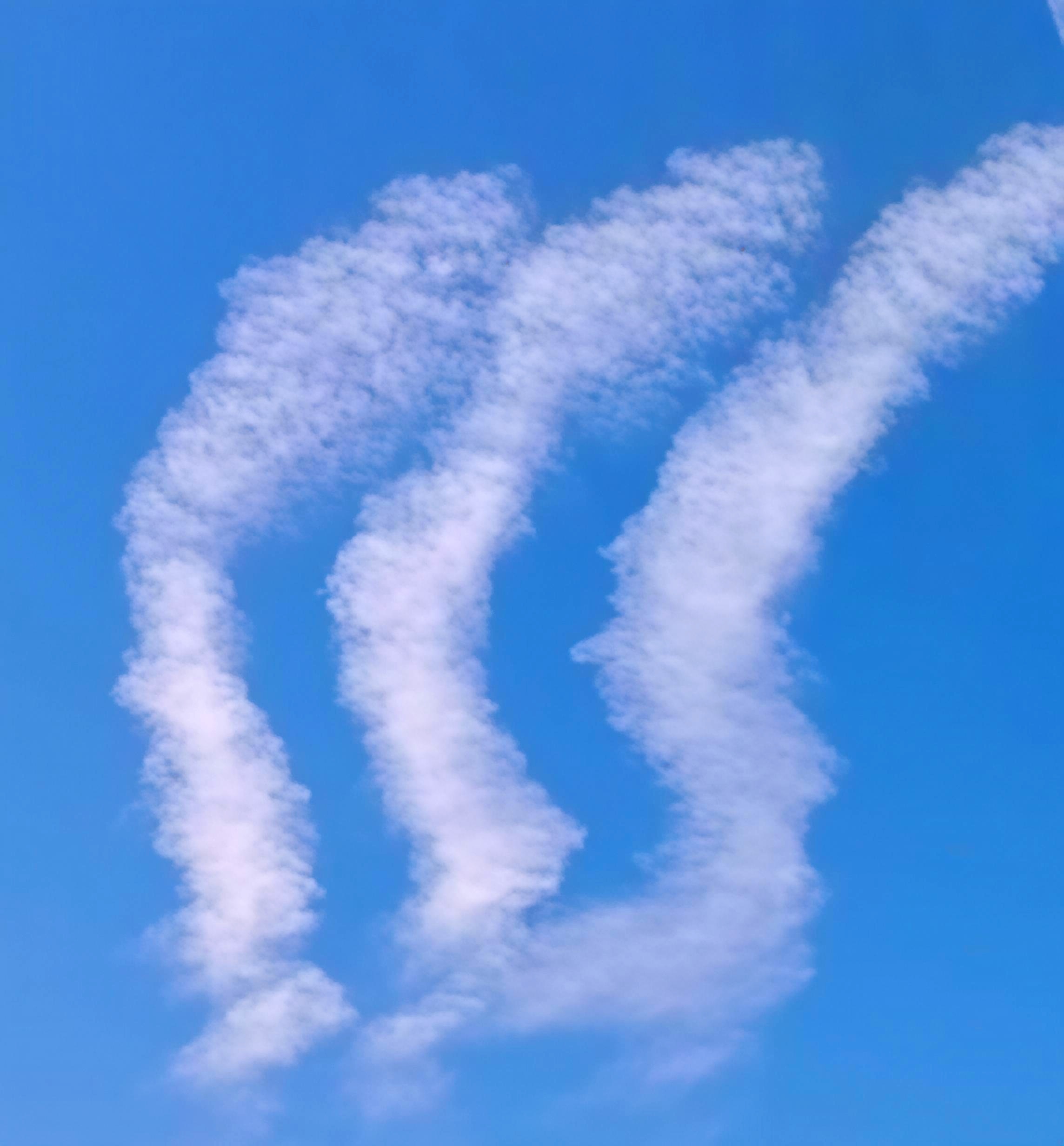 Tres garras de vapor rasgan el azul celeste, como si un dragón invisible hubiera surcado el firmamento dejando su huella etérea. Las estelas ascienden paralelas, marcas de un vuelo ancestral que desafía la gravedad y el tiempo. Un desgarro celestial que revela el paso de criaturas míticas, suspendido entre lo real y lo imaginario, donde el cielo guarda los secretos de su travesía.
