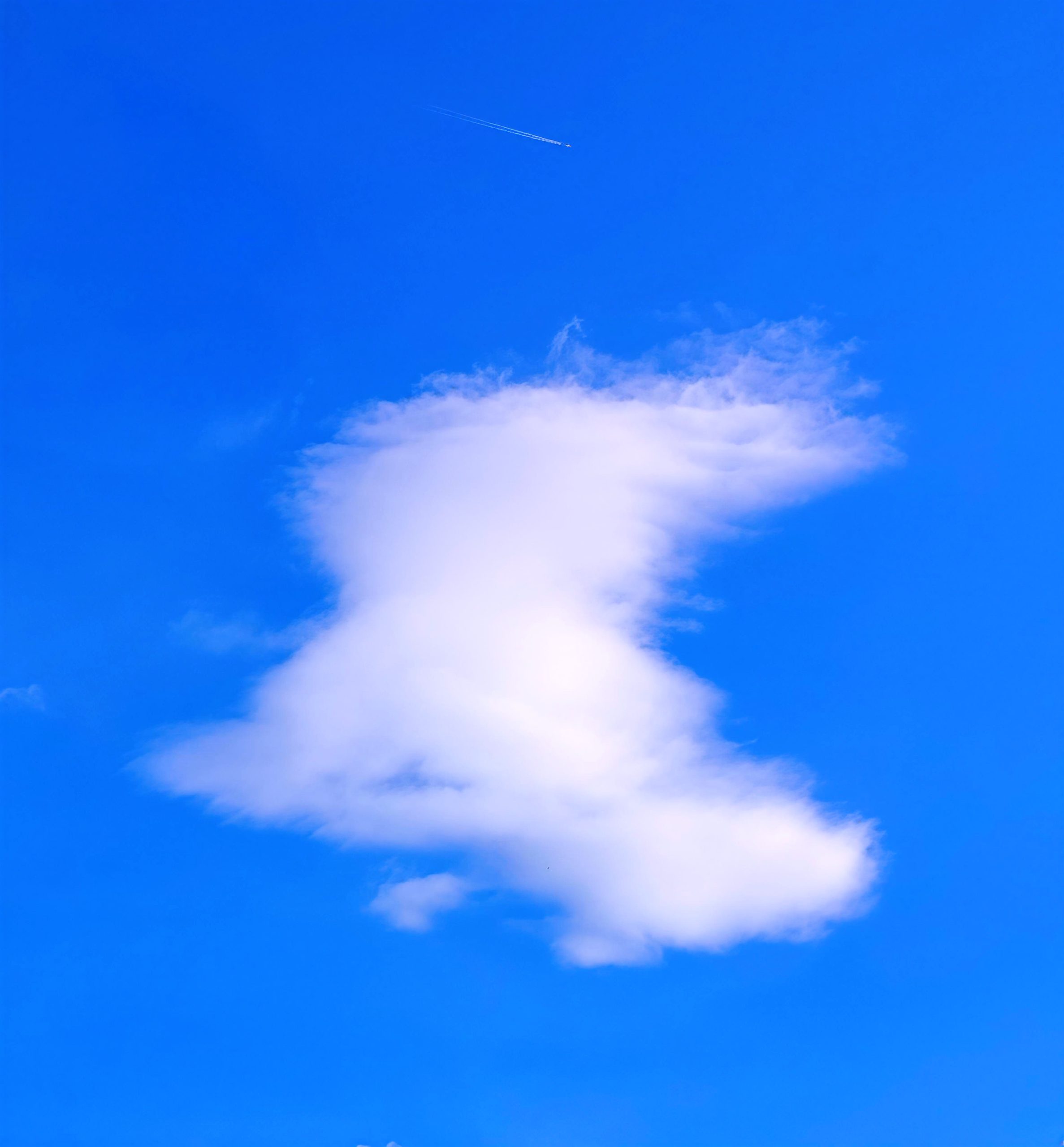 Una nube voluminosa y majestuosa se alza en el azul eléctrico, con formas esponjosas que parecen crecer hacia el cielo. Sus capas densas y luminosas capturan la luz, creando un espectáculo de blancura pura y texturas suaves. Un coloso etéreo que domina el horizonte, imponente y sereno en su belleza infinita.