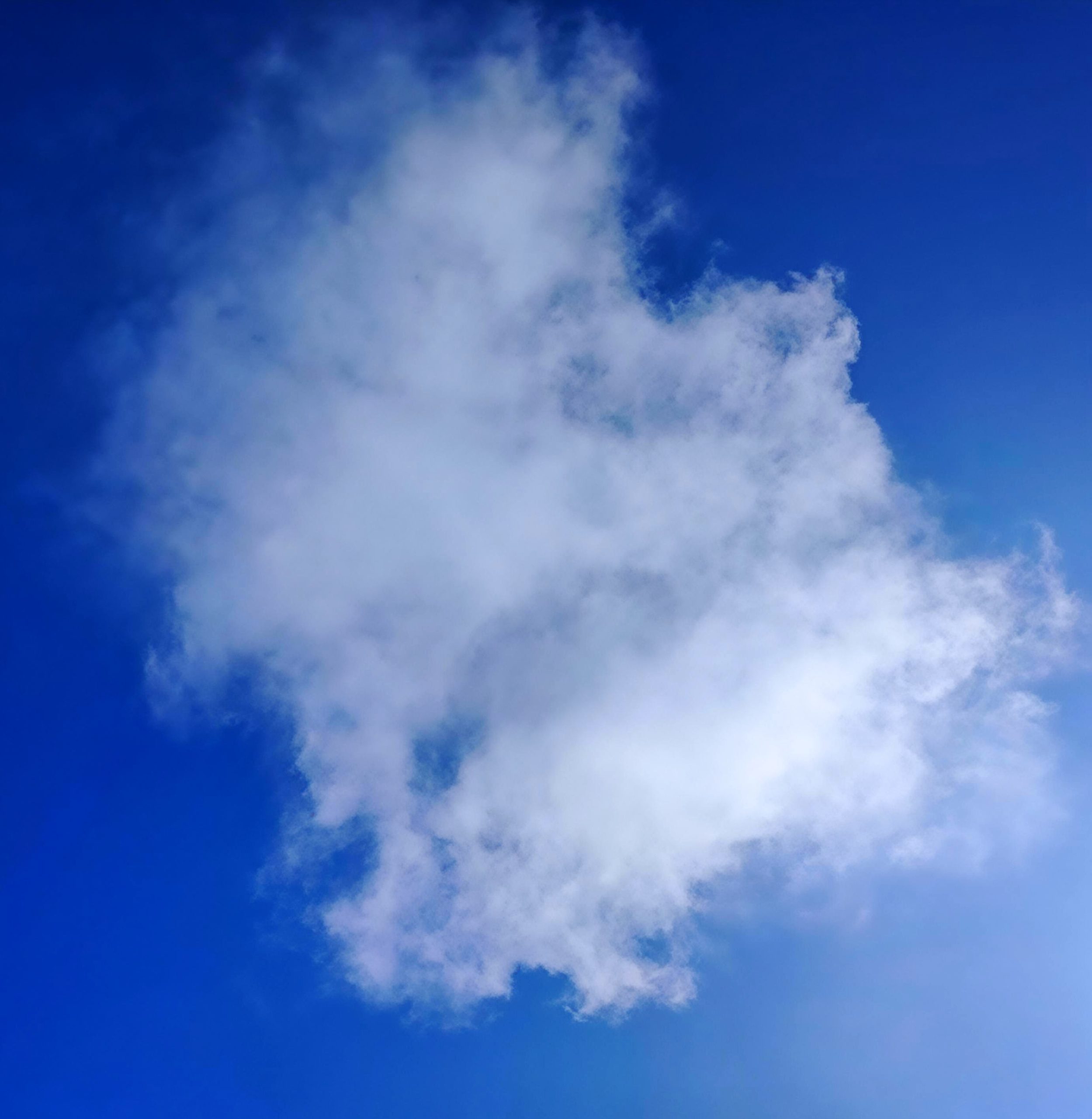 Una nube voluminosa se expande en el azul profundo como un nido celestial tejido con hilos de vapor blanco, con sus formas redondeadas y protectoras que evocan un refugio suspendido en el aire. Sus contornos irregulares se difuminan creando una textura mullida y acogedora, mientras pequeñas cavidades de azul atraviesan su masa como ventanas que dejan entrar la luz del firmamento. Una guarida etérea flotando en la inmensidad, hogar invisible de sueños y secretos, puro algodón convertido en santuario donde lo efímero encuentra su morada.